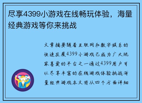 2022年是手游行业蓬勃发展的又一重要年份,许多备受期待的新游戏发布,也有一批老牌游戏凭借更新和优化持续吸引玩家。在这种竞争激烈的环境中,如何从众多手游中挑选出最受欢迎、最值得体验的游戏成为了广大玩家面临的难题。本文将通过四个方面详细分析2022年最受欢迎的手游排行榜,帮助玩家们从中挑选出最适合自己...